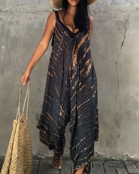 Be the first to review “Tie-Dye Print Wide-Leg Lace-Up Loose Jumpsuit” Cancel reply